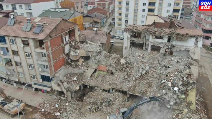 Öte yandan, yıkım çalışmaları dron ile havadan görüntülendi.