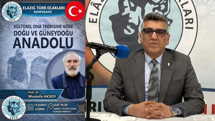 Türk Ocakları Elazığ Şubesi periyodik olarak düzenlediği konferanslarını sürdürüyor. Geçtiğimiz günlerde 'Şiir ve Milli Kimliğin İnşası' konulu konferans düzenleyen Elazığ Türk Ocağı 13 Şubat 2026 Cuma günü saat 19:30'da Ahmet Tevfik Ozan Kültür ve Kongre Merkezinde 'Kültürel DNA Teorisine Göre Doğu ve Güneydoğu Anadolu' konulu konferans düzenleyecek. Konferansa konuşmacı olarak Munzur Üniversitesi Sosyoloji Bölümü Öğretim Üyesi Prof. Dr. Mustafa Aksoy katılacak.