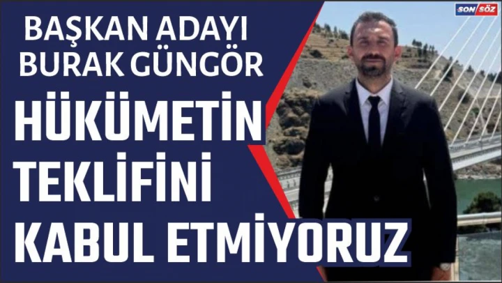 Türkiye Yol-İş Sendikası Elazığ 1 Nolu Şube Başkan Adayı Burak Güngör ' Hükümetin Teklifini Kabul Etmiyoruz'dedi.