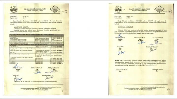 Elazığ Belediyesi Ulaşım İhtisas Komisyonu tarafından hazırlanan 65 yaş üzeri vatandaşlara sınırlama ve Belediye Otobüsleri'ne yapılacak zam konularındaki raporlar Ak Partili belediye meclis üyelerinin oylarıyla reddedildi.