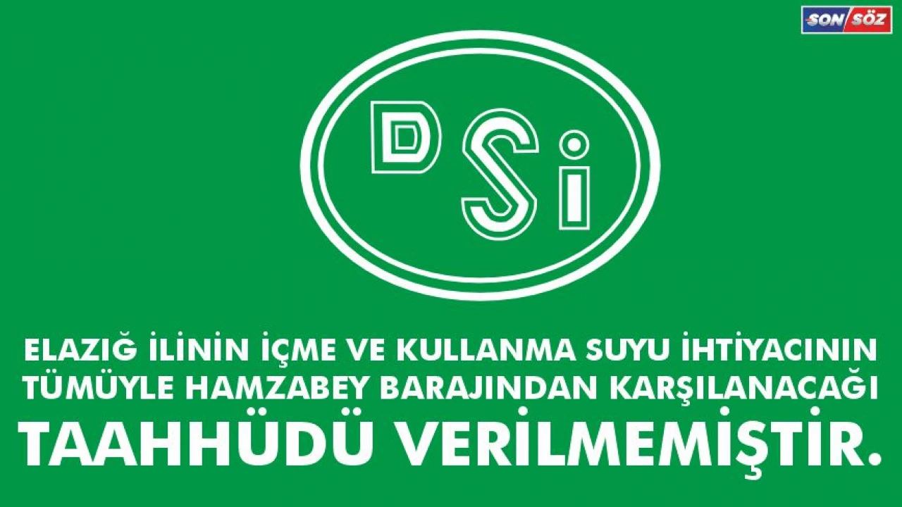 DSİ tarafından yapılan açıklamada, Elazığ’ın içme ve kullanma suyunun tümüyle Hamzabey Barajı’ndan karşılanacağına yönelik herhangi bir taahhütte bulunulmadığı vurgulandı.