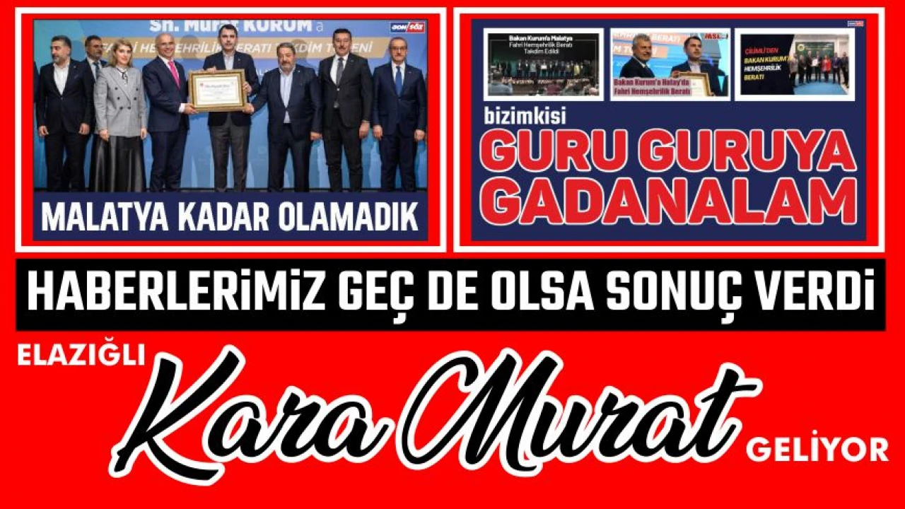 Gazeteniz Sonsöz’ün daha önce iki haber olarak gündeme getirdiği 2020 Elazığ depremi sonrasında, Elazığ için gece gündüz çalışan ve halkın gönlünde taht kuran,her fırsatta “Hemşehrisi olmaktan gurur duyduğum Elazığ” ifadeleriyle şehre olan sevgisini dile getiren ve Elazığlılar tarafından “Kara Murat” olarak sevilen Bakan Kurum, Elazığ’dan beklenen vefayı nihayet görecek.