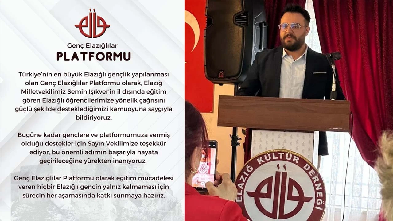 Ankara  Elazığ Kültür Derneği Genç Elazığ Platform Başkanı Muzaffer Batuhan Yetiş,MHP Elazığ Milletvekili Semih Işıkver'in Eğitim Vakfı çağrısına destek mesajı yayınladı.