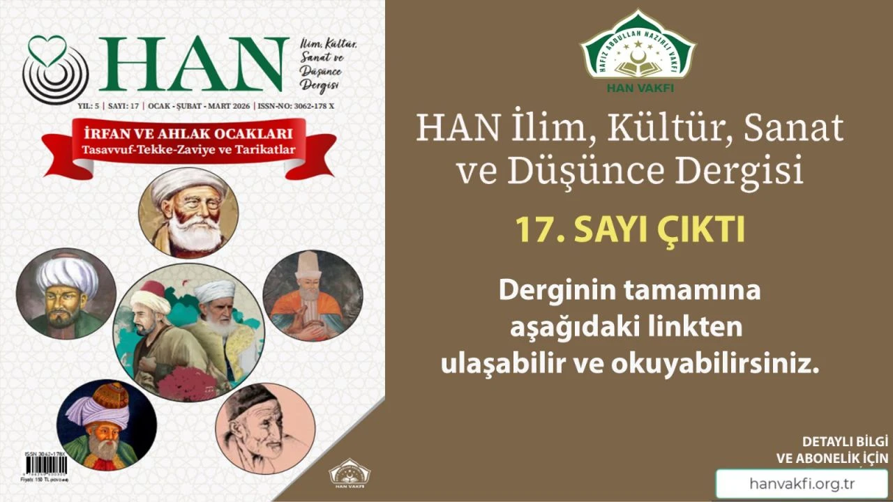 Hafız Abdullah Nazırlı Vakfı (HAN Vakfı) tarafından hazırlanan Han İlim,Kültür,Sanat ve Düşünce Dergisi'nin 17.Sayısı yayınlandı.