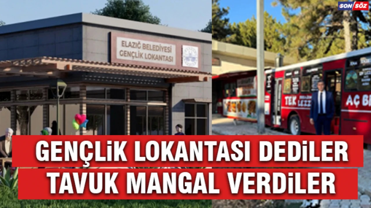 Elazığ Belediye Başkanı Şahin Şerifoğulları’nın , seçim vaatlerinden biri olan “Gençlik Lokantası” seçim sonrası evrilerek yerini tavuk ürünlerinin ağırlıklı olarak satıldığı “Kilo Mangal Otobüsü’ne bıraktı.