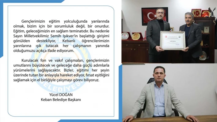 Baskil Belediye Başkanı Tuncer Turus ve Keban Belediye Başkanı Yücel Doğan yayınladıkları mesajlarda ,MHP Elazığ Milletvekili Semih Işıkver'in Eğitim Vakfı çağrısına destek verdi.