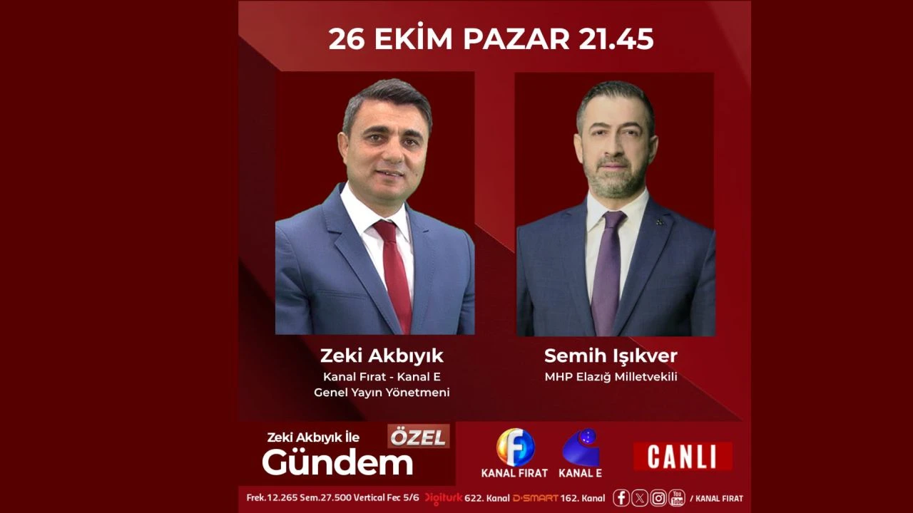 MHP Elazığ Milletvekili Semih Işıkver yarın akşam Kanal Fırat ve Kanal E genel yayın yönetmeni Zeki Akbıyık'ın hazırlayıp sunduğu Gündem programının konuğu olacak